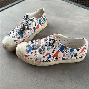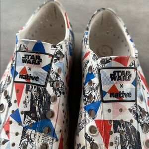 Fun Native Star Wars slip-on shoes. All over print. Perfect for everyday adventures. Women size 6. Men’s size 4. Multiple listings.