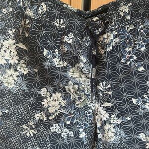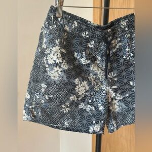 Navy shorts with floral design. Comfortable and stylish for swimming, boat, and beach days.