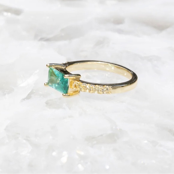 Sparkling 14K gold vermeil ring with pariba cz and stunning baguette center stone.