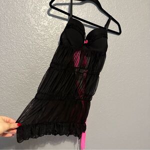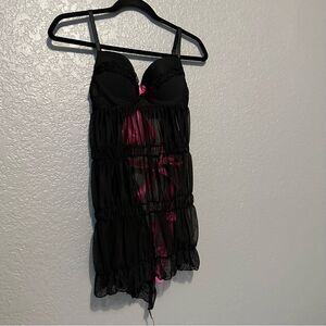 🍄Native intimates black & bright pink bow lingerie babydoll open back top/dress