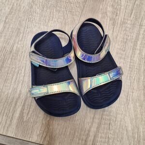 Native toddler girls 9 Charley Holographic navy silver strap sandals