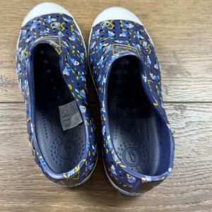 Navy with Mickey 50th print, slip on design, perforated for outdoor/water wear