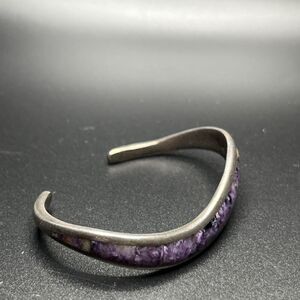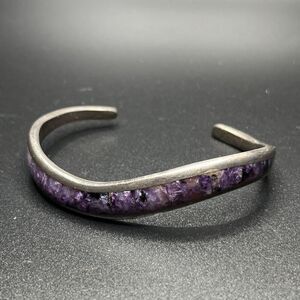 Native American Sterling Silver Sugilite/Charoite Cuff Bracelet Signed Navajo. Not sure about what the stone is, I’m sure it’s obvious to someone who knows gems and minerals better than I do. Please feel free to message me with clarifications as I don’t want to have an inaccurate listing.