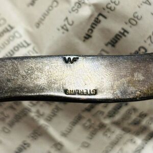 Measures approx 5.5” inside tip to tip with a 1.25” gap. Weighs just over 19 grams. Stamped Sterling and signed by the artist with a WF. Not sure the artists actual name however.