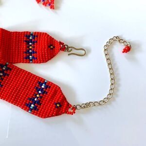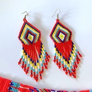 Native style loom beaded fringe choker necklace with earrings to match. In excellent condition.