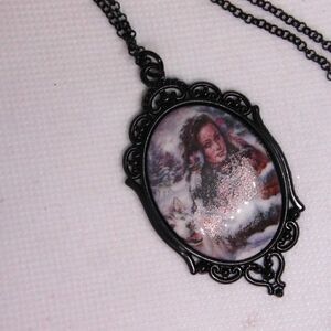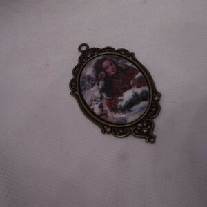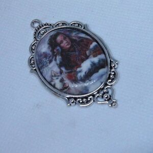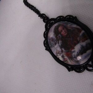 Native Tribal Maiden Wolf Porcelain Cameo Necklace Pendant Native America
