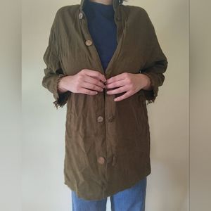 Adorable brown/green, lightweight top with wooden buttons. My witchy cottage core queens need this
