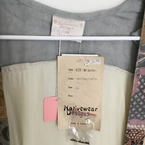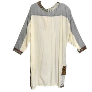 Nativewear Designs Womens Long Kimono Coat XS Cream Gray Beaded Patchy Oversize