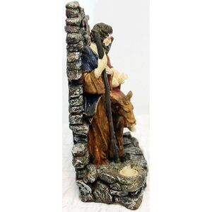 Nativity Mary Joseph Jesus Holy Family Scene Taper Candle Holder Sculpture Stone