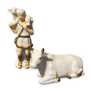 Nativity Scene 10 Piece Set White Gold Accents Figurines Christmas Bisque