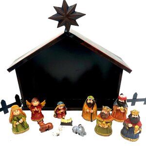 Nativity Scene Set With Stable & Figurines
