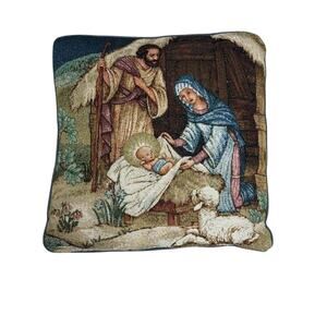 Nativity Scene Throw Pillow Square Holiday Decor Tapestry Nice!