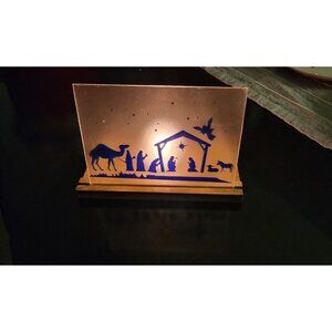 Nativity Silhouette Glass Candle Holder With Wooden Base