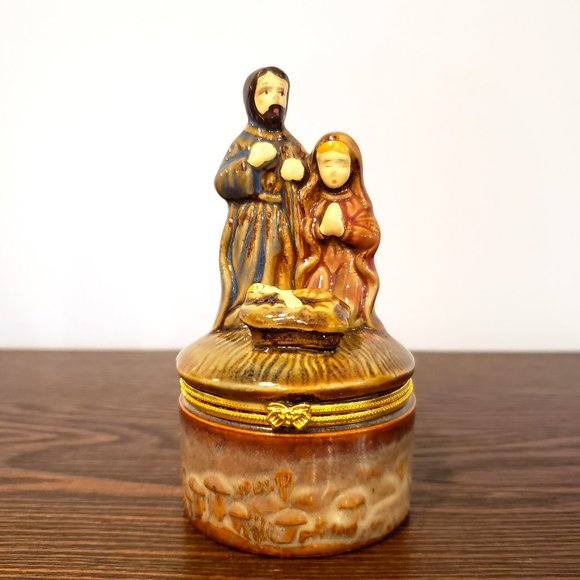 Nativity Trinket Box Christmas Porcelain Ornament Hinged Greenbrier 4.25" READ