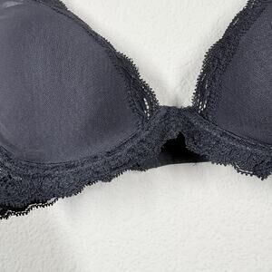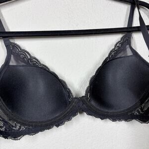 Natori Size 32D Feathers Plunge Bra Black Lace Underwired Padded Adjustable Straps