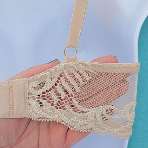 Natori 32DD / 32E Bra Beige Cafe Feathers Lightly Padded Underwire Plunge NWOT