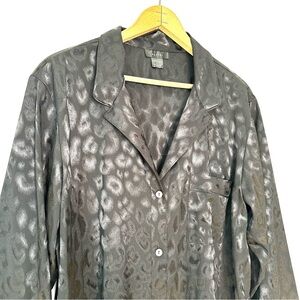 Natori | Black Decadence Sleepshirt Loungewear Leopard Jacquard Satin Size XL