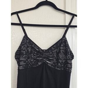 Y2K Natori black lace babydoll sleep dress in size M is both elegant and ultra-comfy. Featuring a soft, stretchy fabric and delicate lace detail at the bust, this piece is perfect for lounging or bedtime. The adjustable straps and pleated bust design provide a flattering, feminine fit.