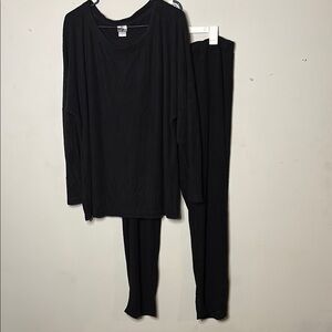 Elegant black pantsuit by Natori. Includes long-sleeve top and matching pants. Perfect for a sleek, sophisticated look.
