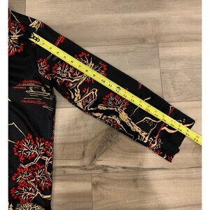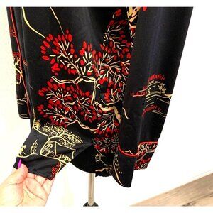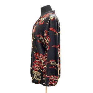 Natori Black Satin Cherry Blossom Floral Long Sleeve Button Up Shirt
