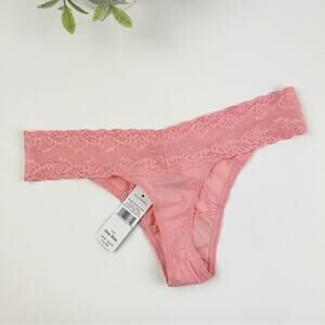 Natori Bliss Perfection Lace Trim Thong in Pink Icing One Size