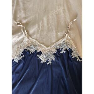 Natori Blue Silky Lacey Night Gown Sleepwear Beautiful Timeless White Accents