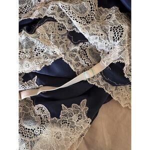 Natori Blue Lacey Night Gown is a beautiful and timeless piece of sleepwear perfect for women. With white accents adding a touch of elegance, this babydoll-style gown in size L/XL offers a comfortable and stylish option for a good night's sleep. Made by the reputable brand Natori, this gown combines quality and sophistication in a lovely blue color. Material is a polyester nylon blend, but it does give a very silky texture almost like it is made out of silk and it does not cling.