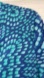 Elegant Natori garment with a striking blue and teal pattern. Ideal for versatile styling. Measures 19 inches pit to pit; 51 inches in length. Has side pockets and slits at bottom.