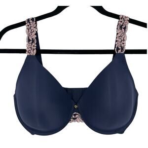 Natori Bra body double with lace full fit dark blue size 32DDD 32F E3167