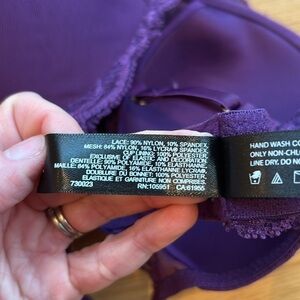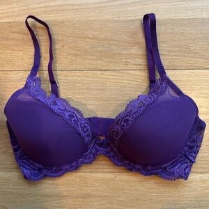 Natori Bra Feathers Plunge Purple Lace Balconette NWOT