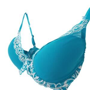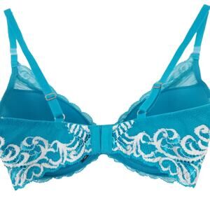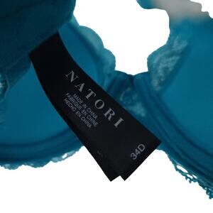 Natori Bra Lace Trim 34D Teal Blue Tan Underwire Bra Excellent Condition