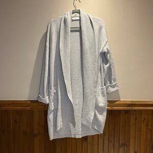 Natori Chenille Open Front Cardigan Sweater Sz S Gray Lounge Cozy Long