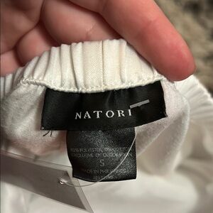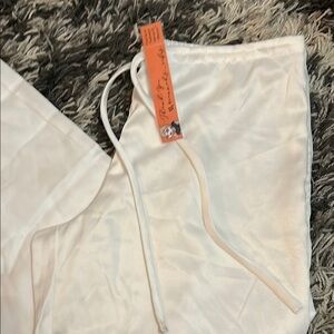 Elegant cream satin pants with elastic waistband. Perfect for relaxed elegance.