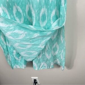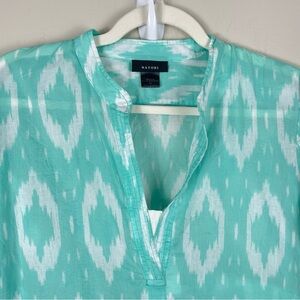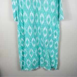 Natori Dress Womens Medium Cotton Blue White Midi Side Slit V-neck Preppy Casual