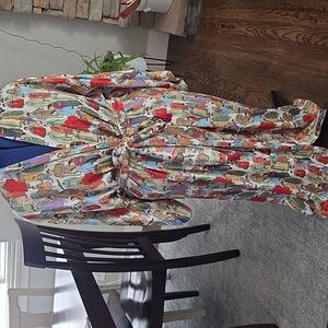 •robe is in very good condition. the inside tie is frayed and the decorative belt ends are coming loose from the belt. most likely an easy fix. please see photos attached