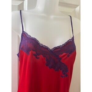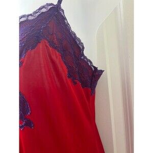Natori Enchant Lace Trim RED PURPLE Lace Chemise SILKY Fabric SZ XS SEXY