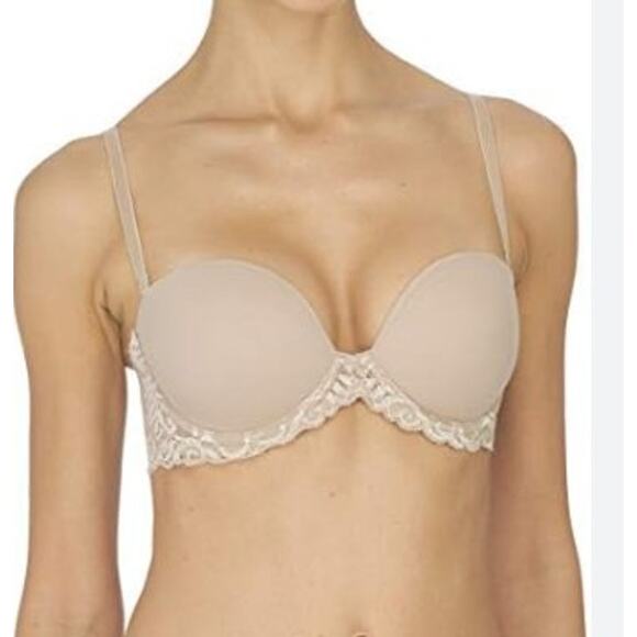 Natori Feathers Convertible Bra Size 32C Style 731023 Color Cafe No Slip Lace