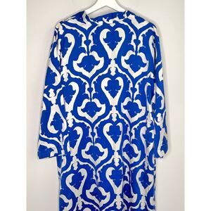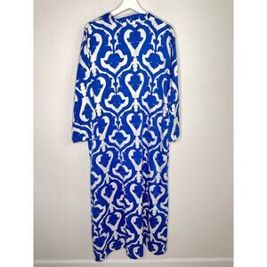 Natori Floral Bishop Sleeve V-Neck Robe Maxi Dress Blue/White Women's Size XL