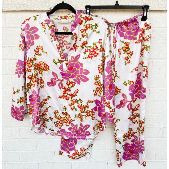 Natori Floral Pajama Set Small Two Piece Long Sleeve Top Pants Sleepwear