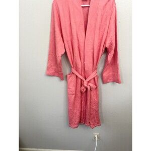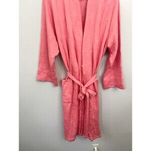 Natori Floral Quilted Belted Long Sleeve Lightweight Longline Robe Pink Large