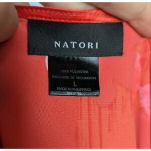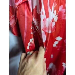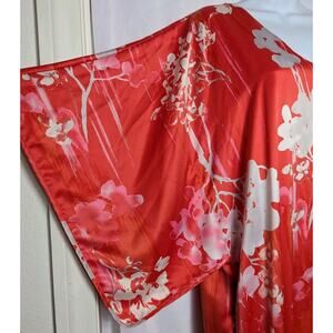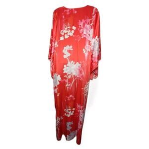 Natori Floral Satin Caftan Kimono Boho Long Red Print Popover Dress V Neck Sz L