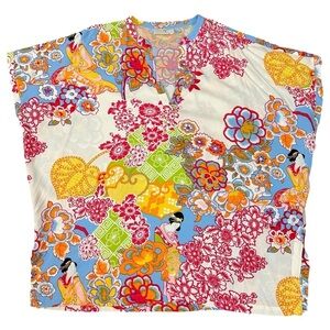 Natori Geisha Garden Mandarin Tunic Top Large NWT V Neck Sleep Lounge