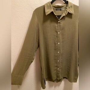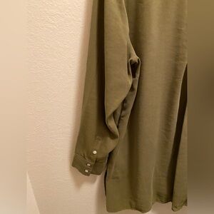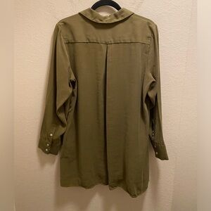 Natori Green Sanded Twill Long Sleeve Button Front Tunic Size S