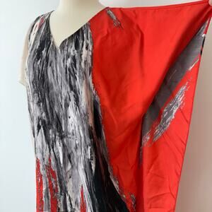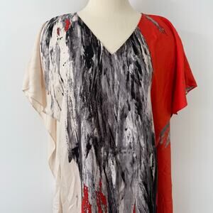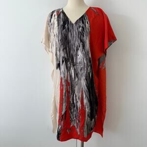 Natori Josie Silk Short Caftan Dress Abstract Orange White Print S