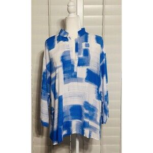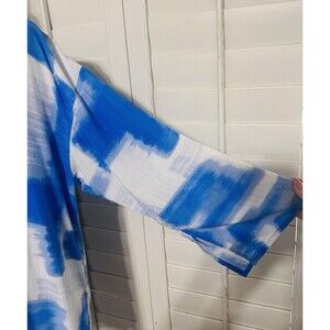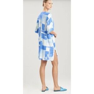 Natori Kasuri Size L Ocean Blue/White Sleepshirt Coverup Everyday Beach Timeless