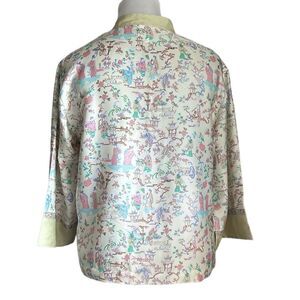 Natori Kimono Asian Pagoda Motif Pajama Top Mandarin Collar Intimates Long Sleeve Small