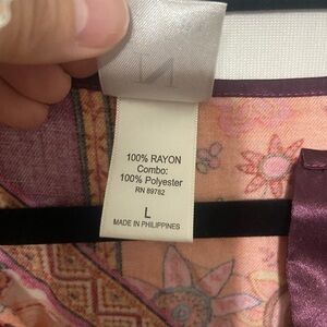 Natori LIKE NEW oversized slouchy paisley colorful satin trim blouse size L