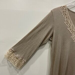 Natori Lace Trim V-Neck Shirt Sleep Dress Small Longline Sleepwear Night Gown