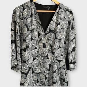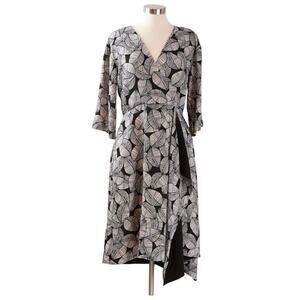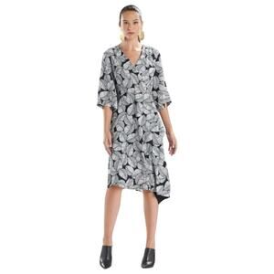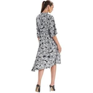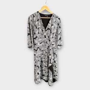 leaf print dress, black and white midi dress, v-neck wrap dress, asymmetrical hem dress, kimono sleeve dress, belted waist dress, modern floral dress, elegant midi dress, cocktail dress, women’s fashion, work to evening dress, monochrome leaf pattern, statement dress, date night outfit, flowy midi dress, Anthropologie dress, Zara dress, ASTR the Label, Free People dress, Mango dress, H&M dress, Urban Outfitters dress, Nordstrom dress, Who What Wear dress, & Other Stories dress, Vince Camuto dress