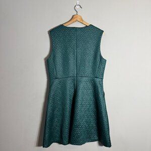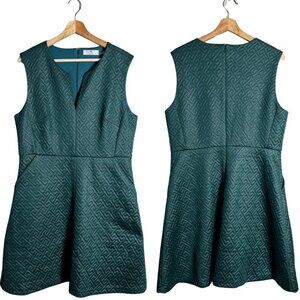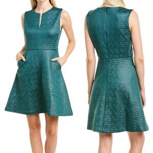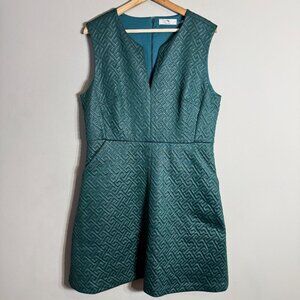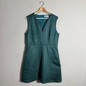Natori Lustrous Textured Quilted Fit & Flare Dress Womens 12 Green Cocktail NWOT